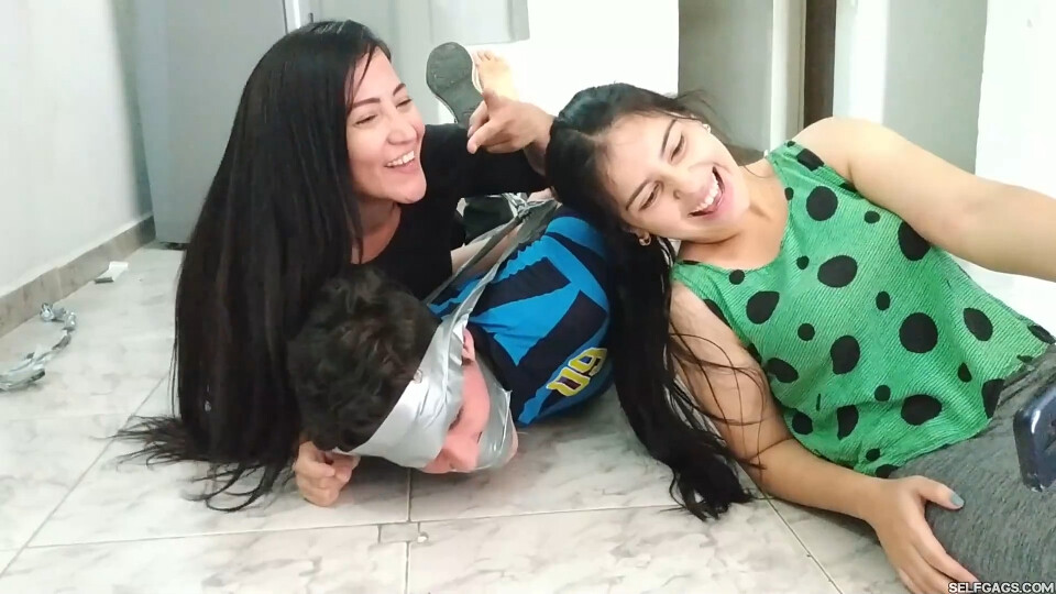 Included in this clip: duct tape bondage, panty gagged male, milf femdom, stepdaughter femdom, home roleplay, femdom humiliation, double domination, hogtied male, struggling, gag talk, tape gagged, wraparound gag, gagged and helpless, onscreen tying, onscreen gagging, men in bondage, dominant women, bdsm roleplay