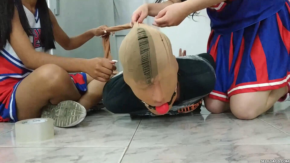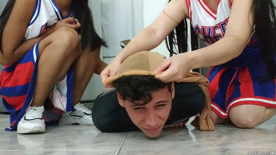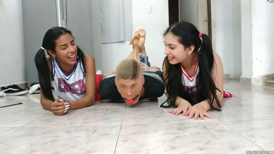 Included in this clip: female domination, tape bondage, cheerleaders, ball gagged, femdom bondage, humiliation, latino, gagged men, pantyhose encasement, double domination, latinas, onscreen gagging, men in bondage, onscreen tying, pantyhose hooded, hogtied, male feet, gag talk, bdsm, struggling, gag fetish