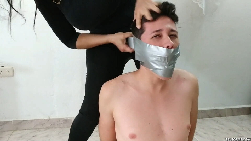 Included in this clip: tape bondage, female domination, panty gagged, hogtied, tape gagged, struggling, gag talk, femdom bondage, men in bondage, milf, teenage boy, foot fetish, gagged men, wrap gagged, barefoot, onscreen tying, mouth stuffed, onscreen gagging, humiliation, foot tickling, bdsm, gag fetish