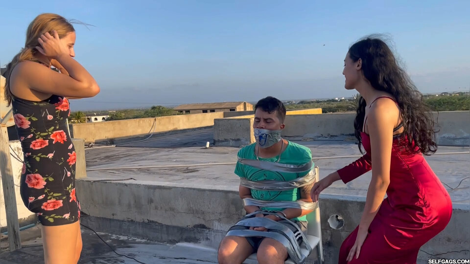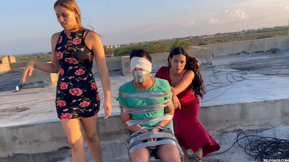 When Franco cheats on his girlfriend Yurca, she decides to teach him a humiliating lesson—in full public view. Bound to a chair on the rooftop, tightly gagged with Yurca's dirty panties and layers of duct tape, Franco is left to squirm and grunt while his punishment unfolds. Things escalate when Yurca’s best friend Khloe arrives and decides to add her own panties to the gag, replacing Yurca’s and taking control. Franco is left blindfolded, chair-tied, and fully gagged, helpless and humiliated in front of the whole town.